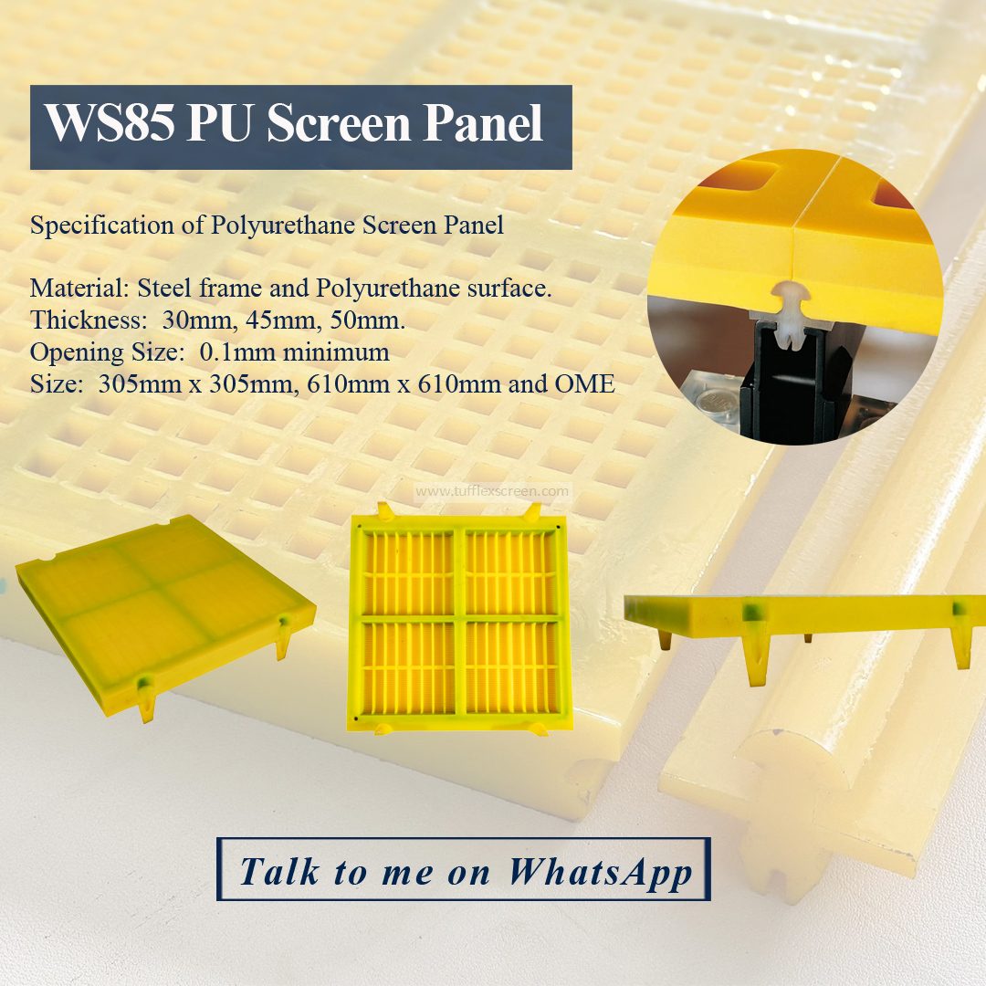 Polyurethane dewatering screen panel is a type of screens made of steel frame and polyurethane surface. This structure ensure the high tensile strength and much better wear resistance than the woven vibrating screen mesh and perforated vibrating screen nesh.