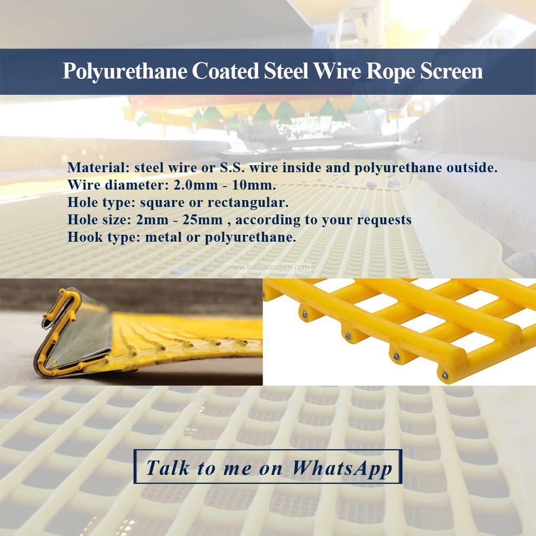 Tufflex is polyurethane-coated stainless steel wire rope screen with the same open area as woven wire and huge advantages over traditional screens.
