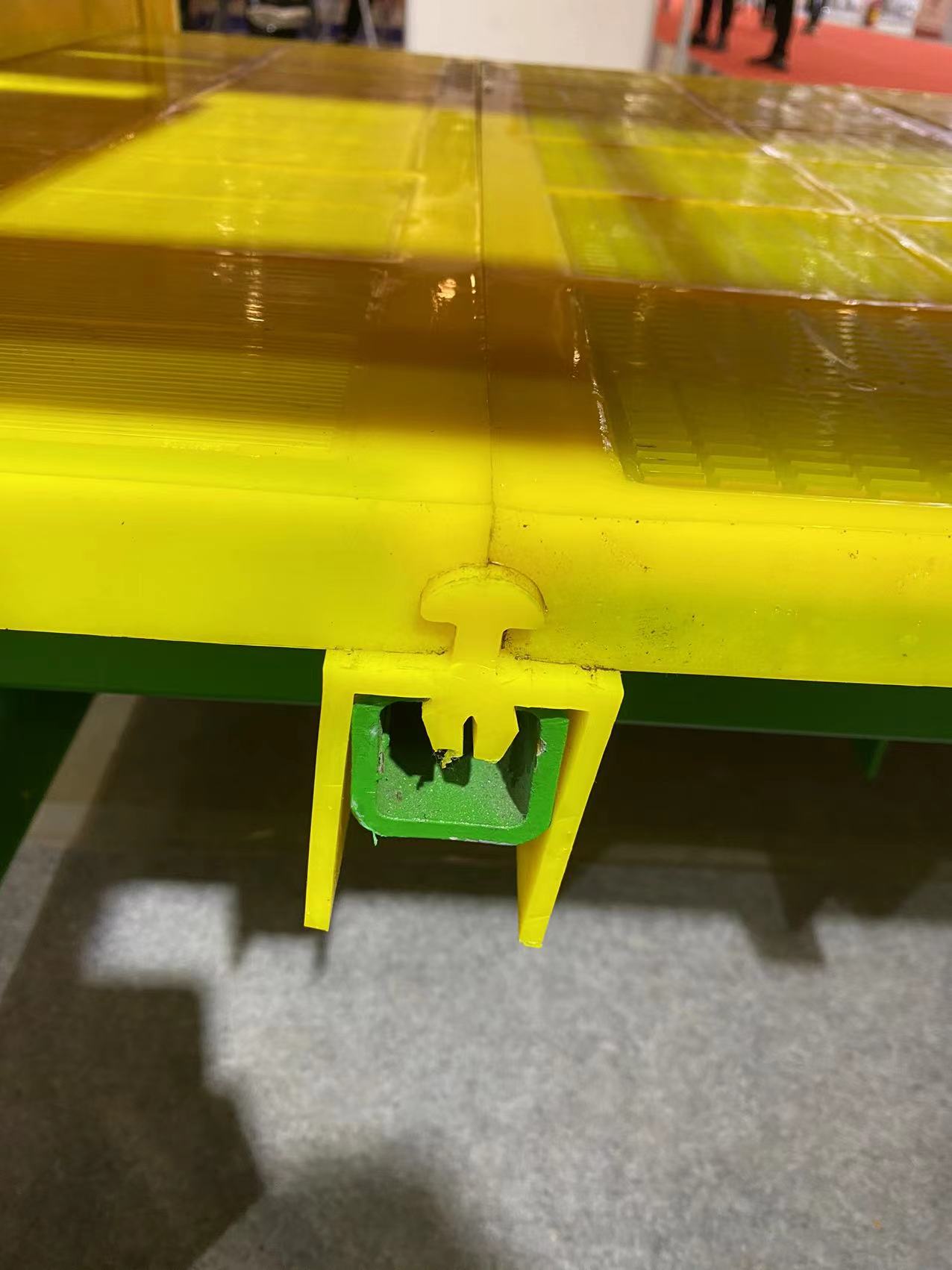 Installation is a breeze too, with options like nails, bolts, or rail seats, and custom sizes (305×305mm, 600×600mm, etc.) fit any screen machine. The unique double-hardness MDI design—softer on top, harder beneath—boosts resilience, reducing blockages and extending service life, making it a top choice for high-performance screening.