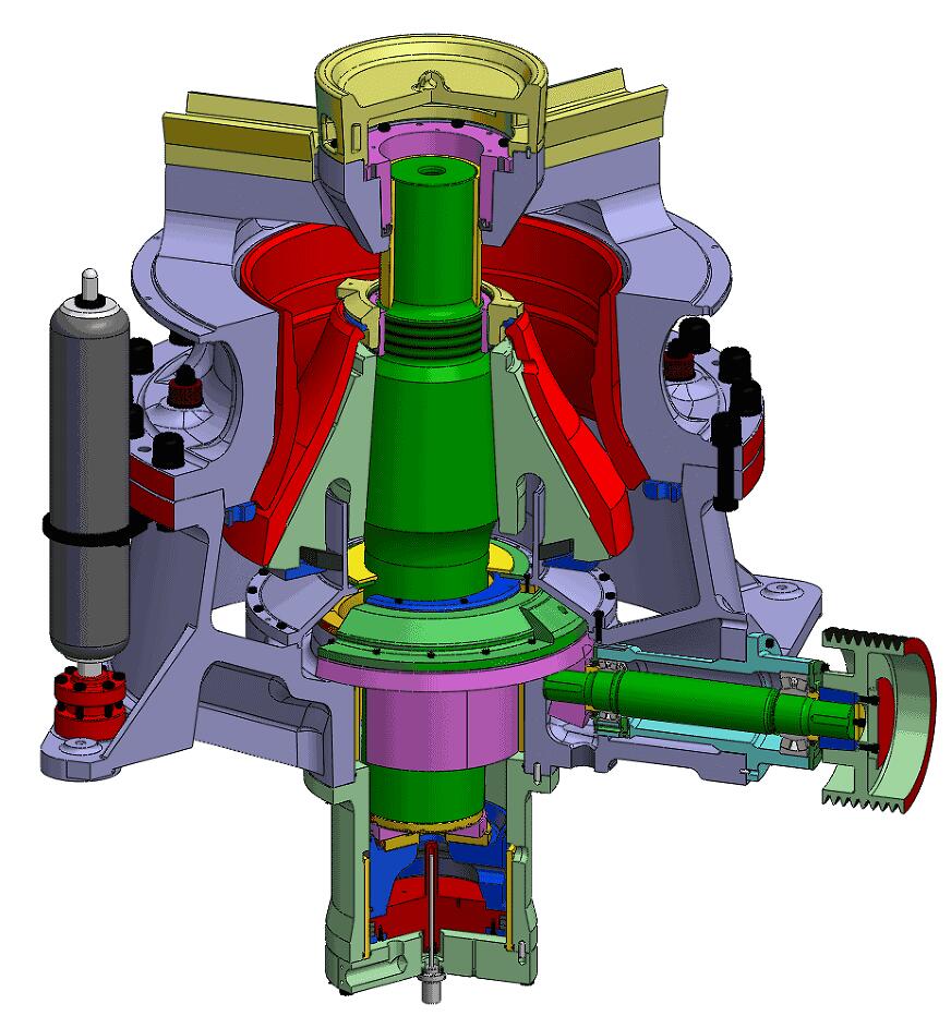 Adopting advanced hydraulic technology, overload protection can be realized effectively, which simplifies the structures and reduces its weight. All maintenance and inspection can be fulilled on the top of crusher, which ensures easy maintenance.