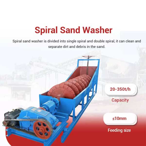 Spiral sand washer can be used to clean sand, gravel, or for grading equipment. It is widely used in cleaning the materials containing a large quantity of mud obvious. It's a good seal structure, fully enclosed gear, efficient, durable, good dehydration effect, the power consumption is small, fine products remain stable.
